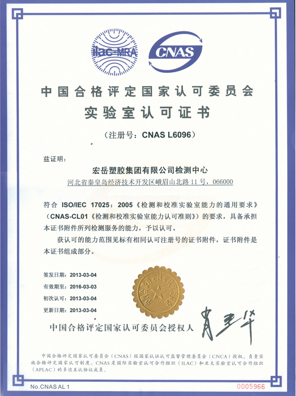 乐鱼塑胶集团有限公司检测中心于2011年3月导入国家试验室认可体系,中心隶属于乐鱼塑胶集团有限公司,拥有国内外先进的检测仪器和设备,全部为相关专业本科以上学历或工作时间超过10年的资深专业人员。自体系推行以来,2011年、2012年中心通过了两次的内审和管理评审,使体系运行不断完善,同时进行了认可委组织的维卡软化、拉伸和熔指的能力验证和测量审核4次,与塑料制品监督检验中心进行了交联度的实验室比对,通过能力验证和实验室比对,说明检测中心具备良好的检测能力,能够确保独立地、公正地对承检范围内的检测项目进行检测,检测数据准确,技术能力较高。