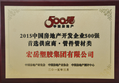 3月24日,来自全国各地的房地产产业链品牌企业代表齐聚北京国贸大酒店,共同见证“2015中国房地产开发企业500强及首选供应商品牌”的诞生。会上发布的《2015中国房地产开发企业500强首选供应商品牌测评报告》公布了房地产部品20个大类的10强品牌,乐鱼塑胶集团凭借雄厚的实力、良好的口碑和过硬的品质再次蝉联“中国房地产开发企业500强管件管材类首选供应商”!