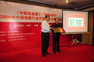 4月28日下午,《中国建设报》主办的2008年中国地暖行业年度盘点活动颁奖典礼在上海光大中心酒店隆重举行,秦皇岛乐鱼管业当选“2008年中国地暖行业PE-Xa管材领军品牌”,沉甸甸的牌匾由中国建筑金属结构协会地面供暖委员会华明九主任亲手授予乐鱼公司总经理助理王明科。本次盘点活动中张思良副总经理获得2008年度地暖行业十大风云人物提名。