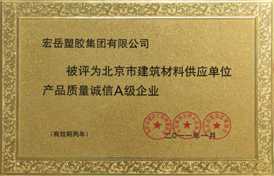 乐鱼获评北京建筑材料供应单位首批“A级产品质量诚信企业”称号