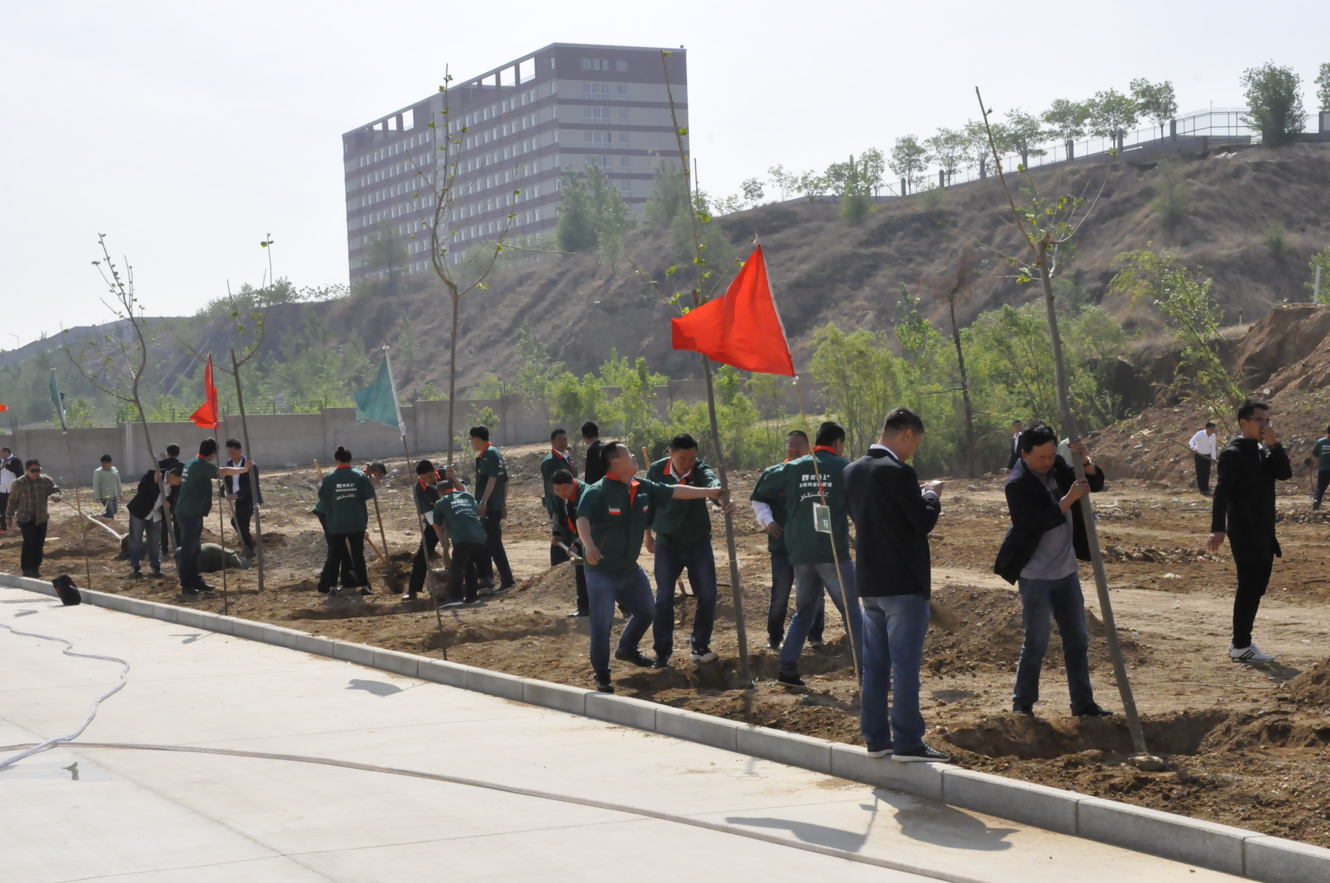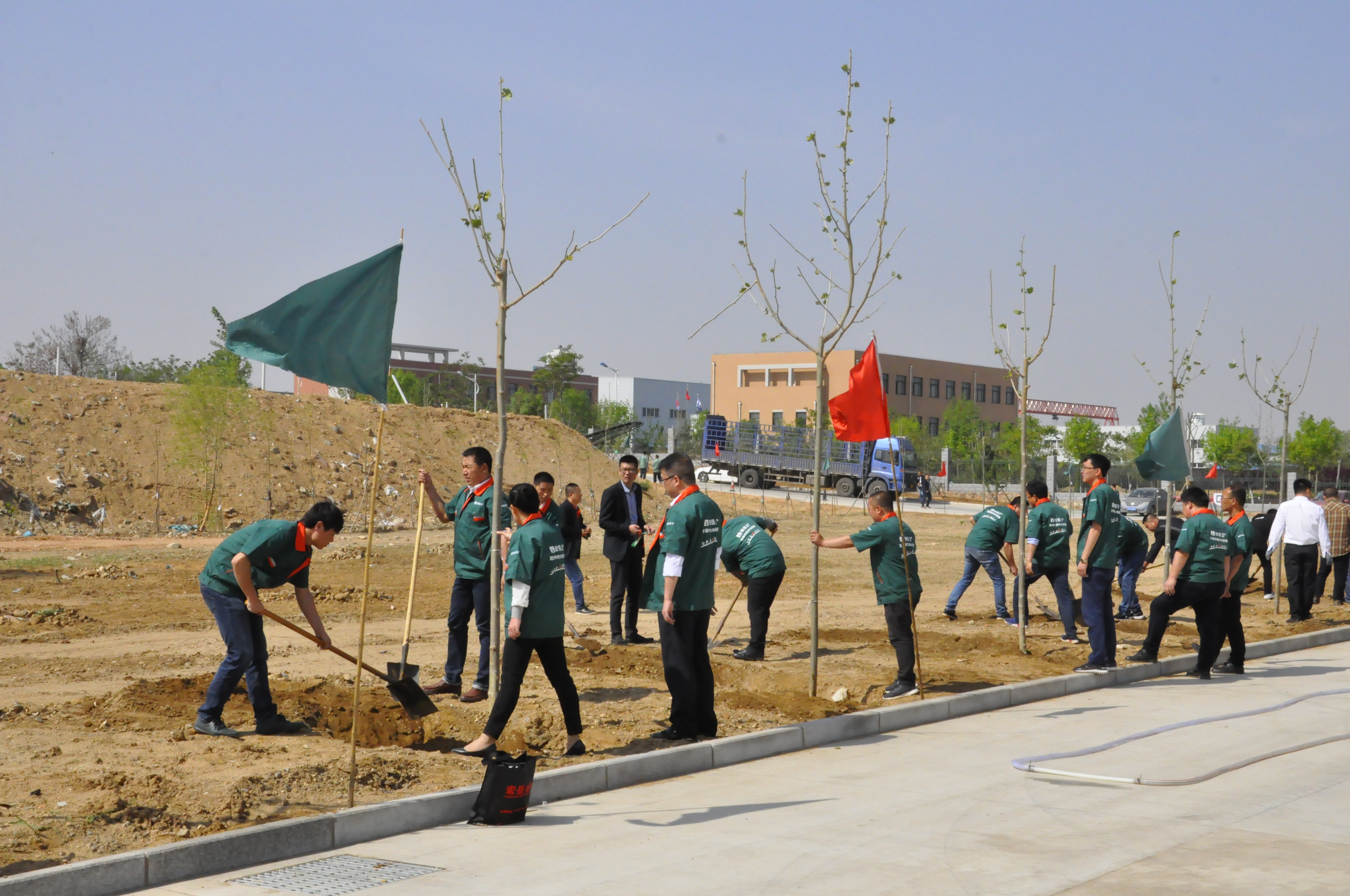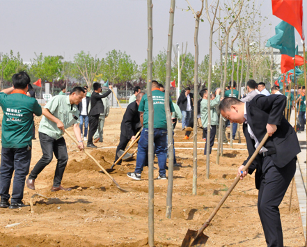 5月4日,乐鱼集团组织职工在集团院内开展“植下希望,让梦想发芽”主题植树活动。植树活动前由集团行政马总详细地向大家讲解植树要领和技巧,在集团营销总监崔总的带领下,个个争先恐后,干劲热火朝天,有的挖土坑、有的安放树苗、有的填土夯实、有的提水浇灌,一个个多彩的身影在阳光下忙碌着,互相协作,交织成一幅幅生动的画面。经过一番热火朝天的劳动,一棵棵新树苗在明媚的春光里迎风挺立,把院内装点得更加生机盎然。