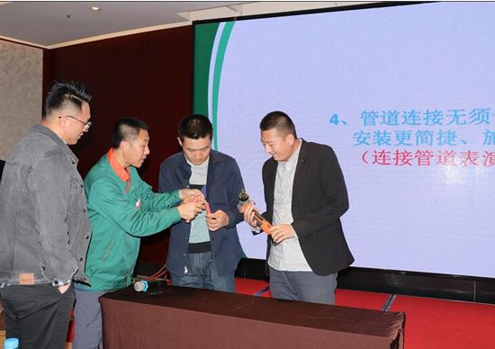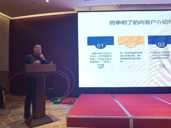 接下来,乐鱼集团暖通工程师汪工为大家讲解了乐鱼1+的施工标准、技术要点及综合产品系统,并着重介绍了乐鱼1+“PE-Xa致纯冷热水管道系统”头尾一根管、维护更便利等独特优势,通过案例讲解、现场演示等方式,让参会人员切实的感受到不一样的产品、不一样的乐鱼1+。