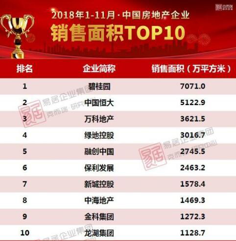 近日,2018年1月-11月中国房地产销售百强榜单出炉,排名前10强中有8家大型地产为乐鱼集团战略合作伙伴!