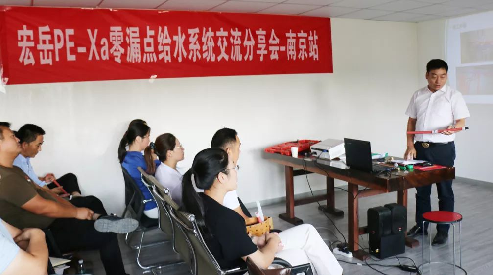 乐鱼1+零漏点给水系统分享交流会在江苏省会六朝古都-南京如期举行,此次交流会得到了南京服务中心董事长朱总的大力支持,与会30余名管理人员和一线业务,共同参加学习和交流PE-Xa产品的相关知识与连接技术。