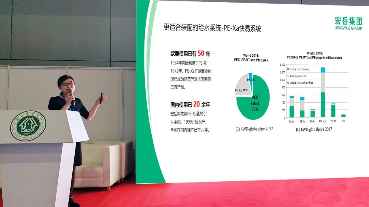 产品技术工程师于海华在论坛上做“PE-Xa快易式供水系统在快装中的应用”主题演讲,与在场的行业大咖们共同就智装快装、行业趋势及建筑设计、生产、施工一体化等内容进行学术交流与探讨,得到了与会嘉宾们的高度认可。
