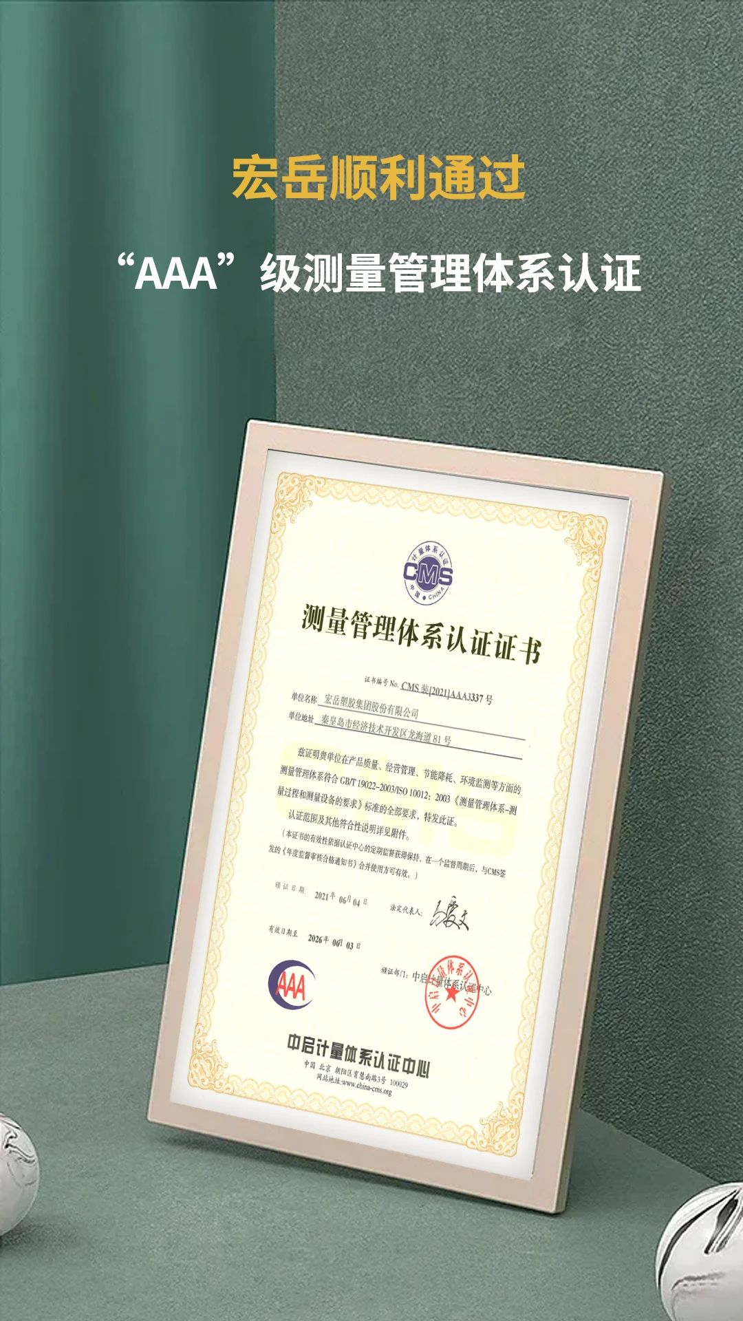 乐鱼顺利通过ISO10012:2003“AAA”级测量管理体系认证,并获得证书。