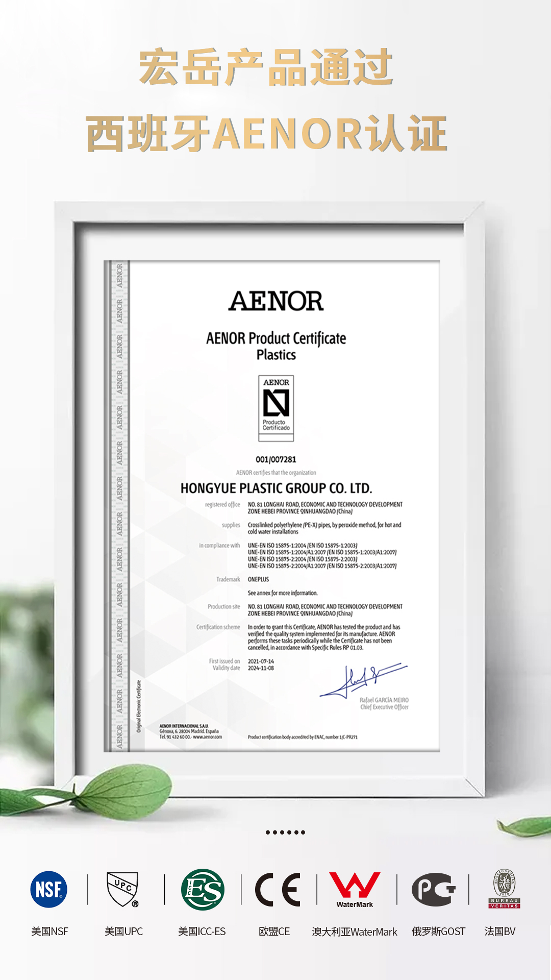 继通过美国NSF、ICC-ES、UPC,欧盟CE,澳大利亚WaterMark,俄罗斯GOST,法国BV等国际认证后,乐鱼产品又通过西班牙AENOR认证。