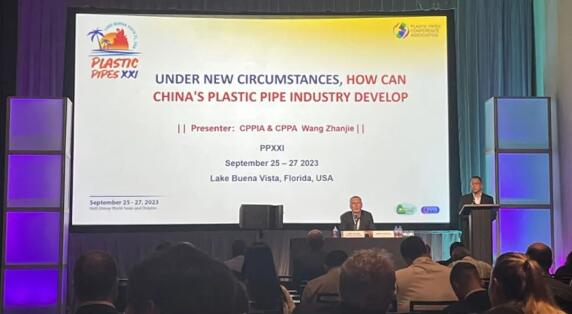 2023年9月25-27日,由欧洲PE100+协会、美国塑料管道协会(PPI)、欧洲塑料管材管件协会(TEPPFA)和国际塑料管道会议协会(PPCA)主办的第二十一届国际塑料管道会议在美国奥兰多迪士尼世界海豚酒店举办。中国塑料加工工业协会理事长王占杰参加会议并发表了《UNDER NEW CIRCUMSTANCES, HOW CAN CHINA'S PLASTIC PIPE INDUSTRY DEVELOP》的主题演讲。乐鱼集团亦受邀参加,与来自世界28个国家,180家公司/机构,300余位代表共同出席了会议。